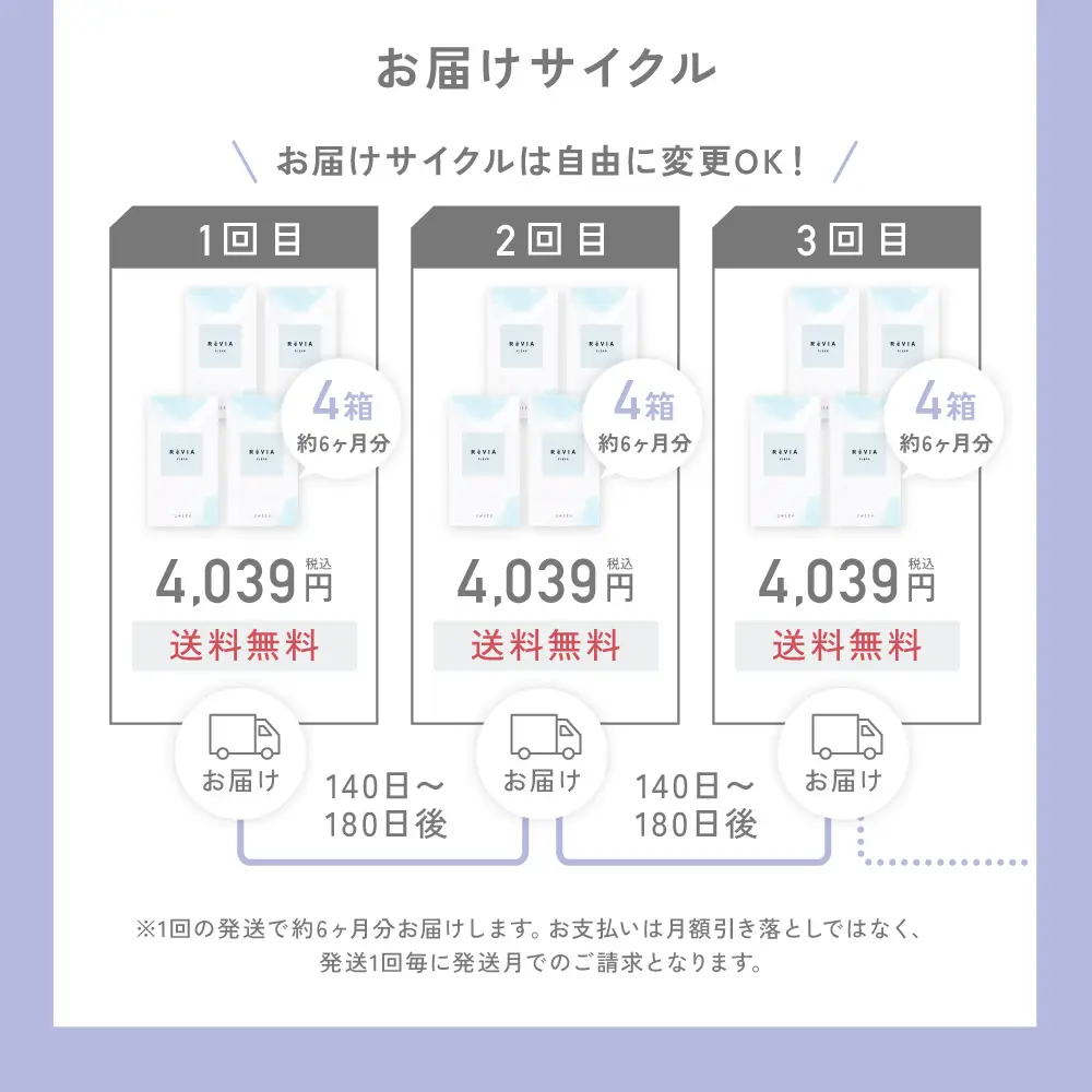 お届けサイクル日数は初回注文時にお客様に選択いただけます。