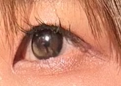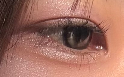 ルックフォーミー着用。最初は水光の部分(?)色のついたところが少しフィルターのようにぼけて見えた気がしたけど、あまり気にならない程度で1日中使えました!特に自然光が当たった時の目のきらきら感がかわいいです😍