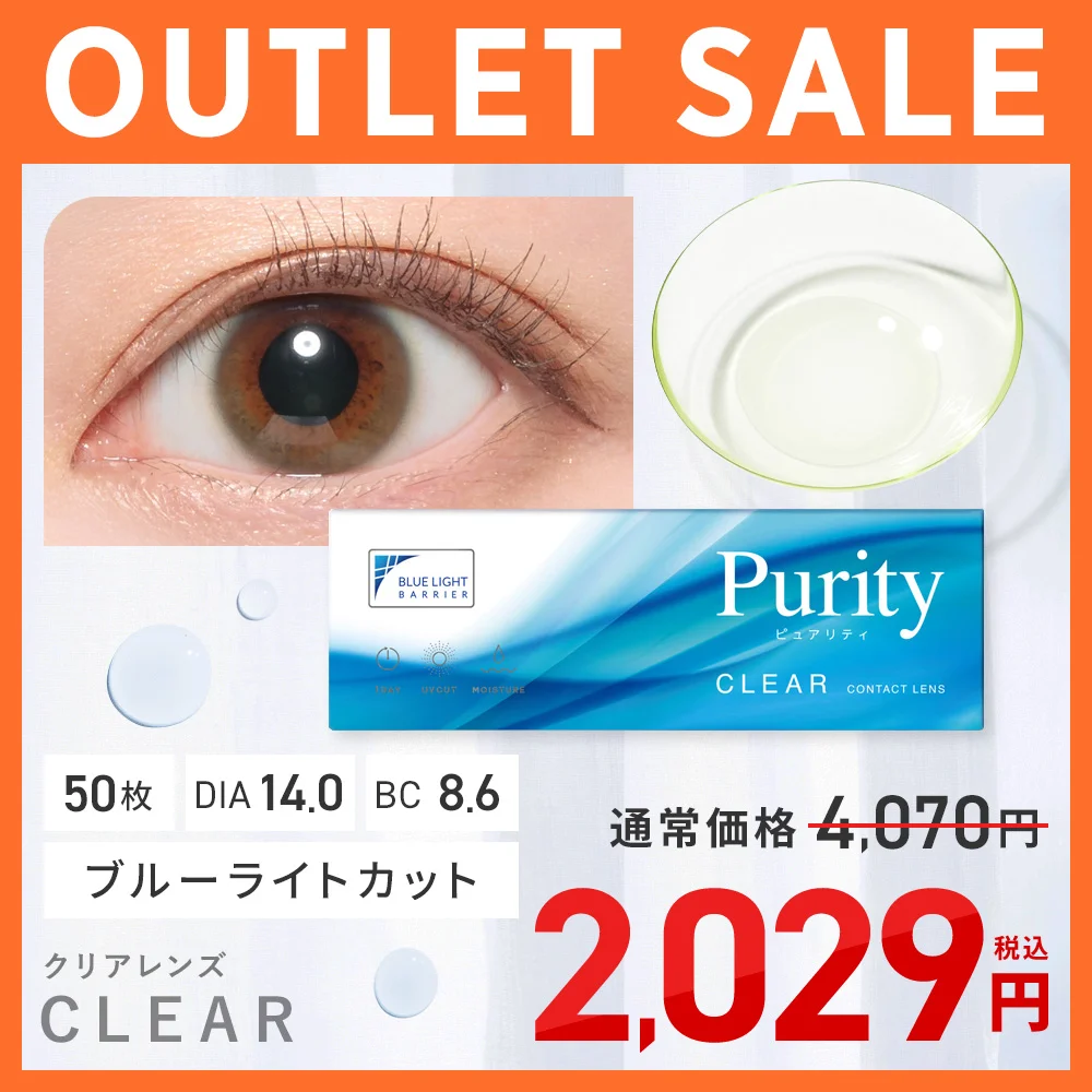 【アウトレット】Purity 1day ピュアリティ クリア ブルーライトカット 度あり 度なし 合計50枚 5枚×10箱